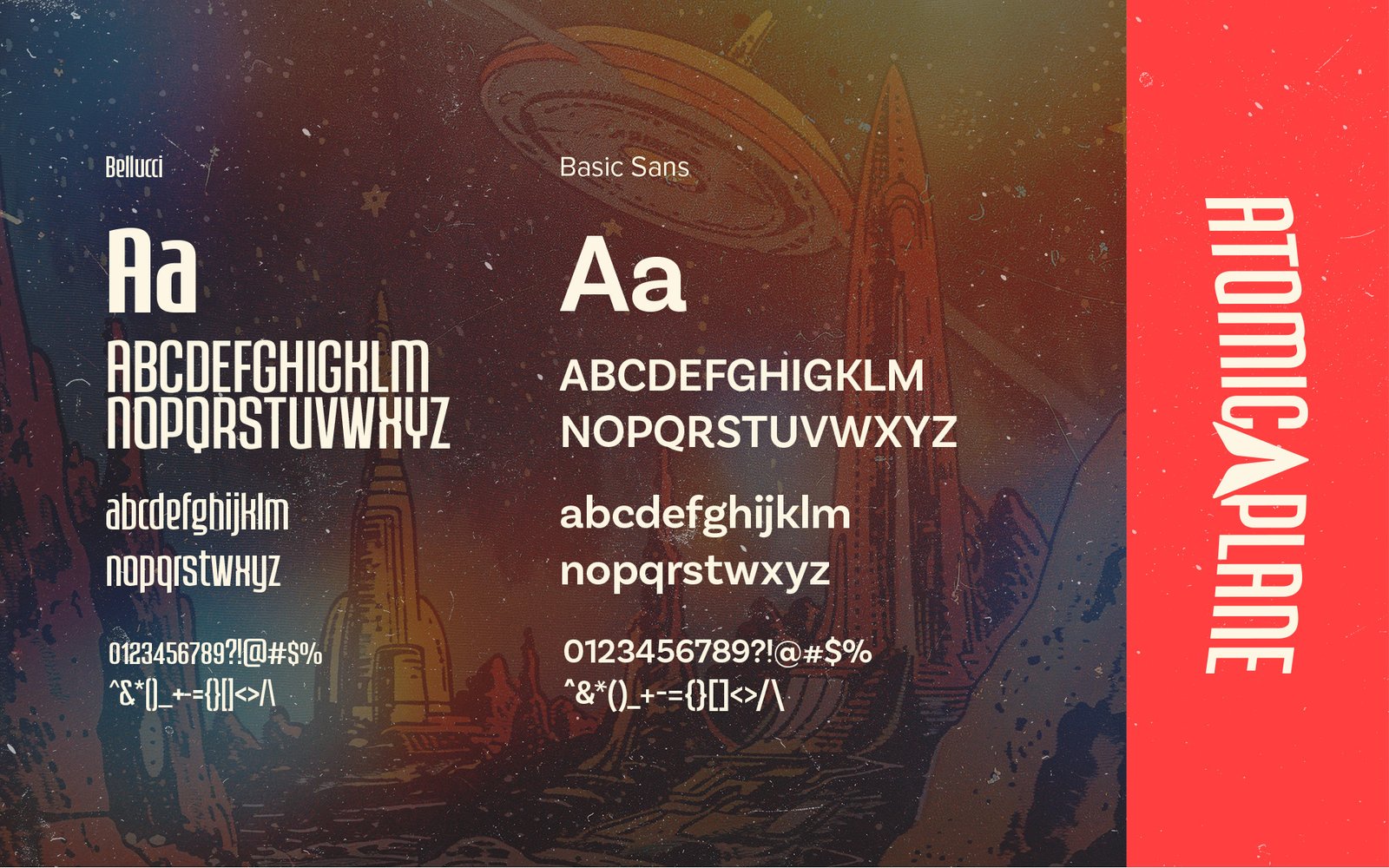 The Atomic Plane brand identity reimagines Atomic Age retro-futurism with a tactile, analogue feel. Drawing inspiration from vintage space-age comics, it fuses bold linework and halftone colors with energetic radiation motifs. The entire system is layered with textures of worn paper, ink smudges, and a subtle grunge, giving the brand a tangible, lived-in quality that feels both nostalgic and powerfully raw.